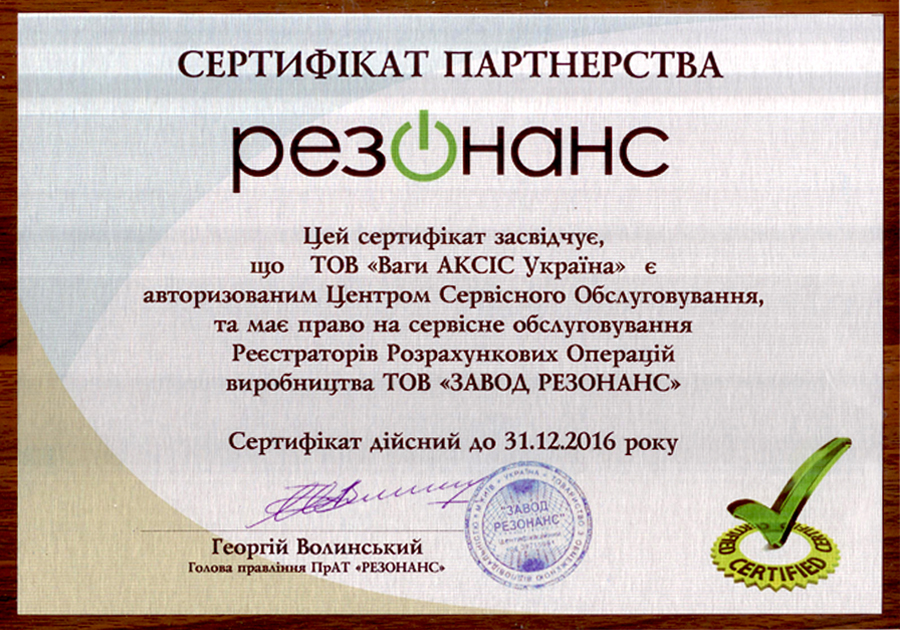 Сертификат партнерства "Резонанс" |