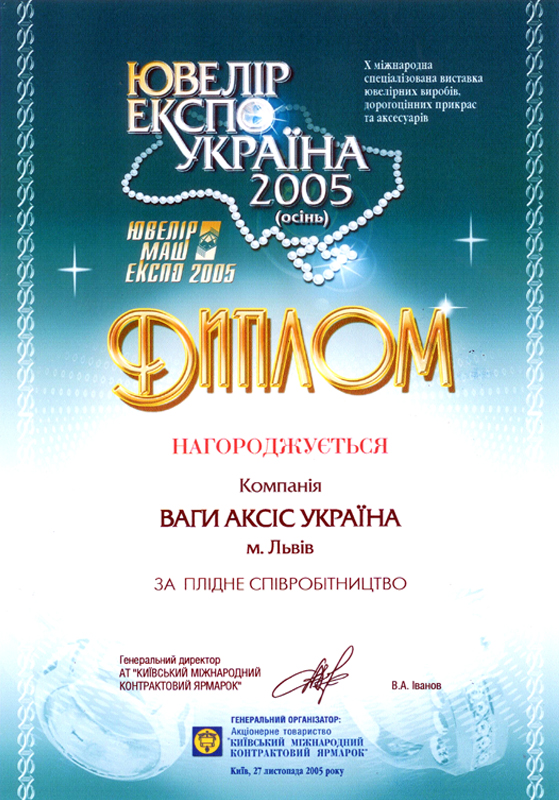 Диплом "Ювелир Експо Украина" |