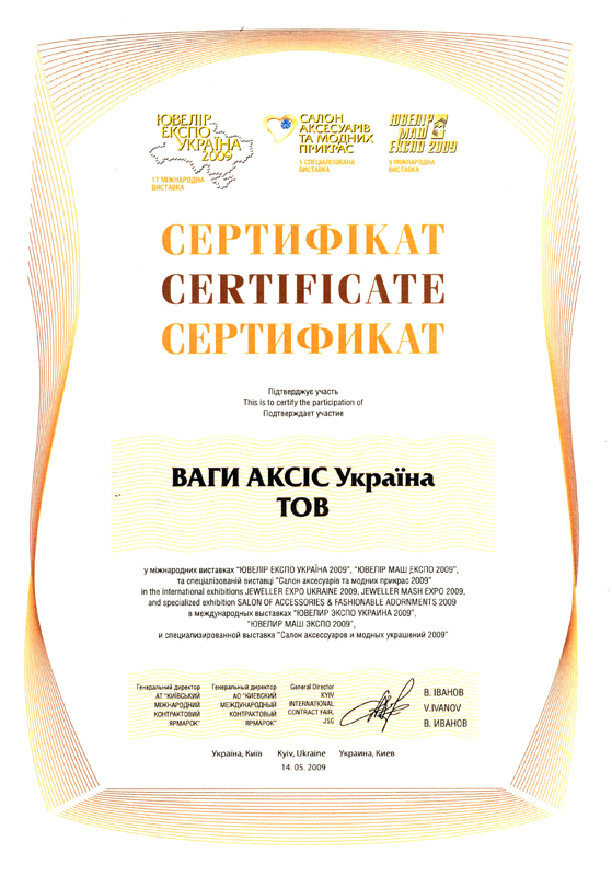 Сертификат "Ювелир Експо Украина" |