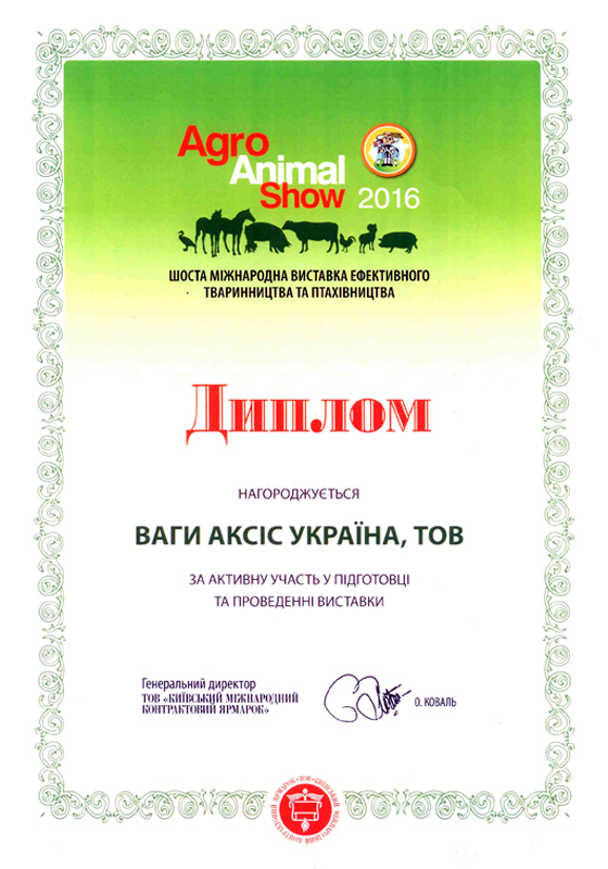 Диплом "Agro Animal Show 2016" |