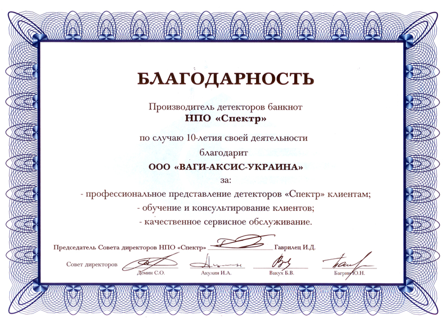 Благодарность "Спектр" |
