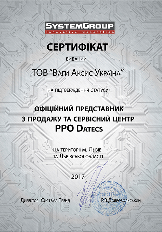 Сертификат официального представителя "SystemGroup" |