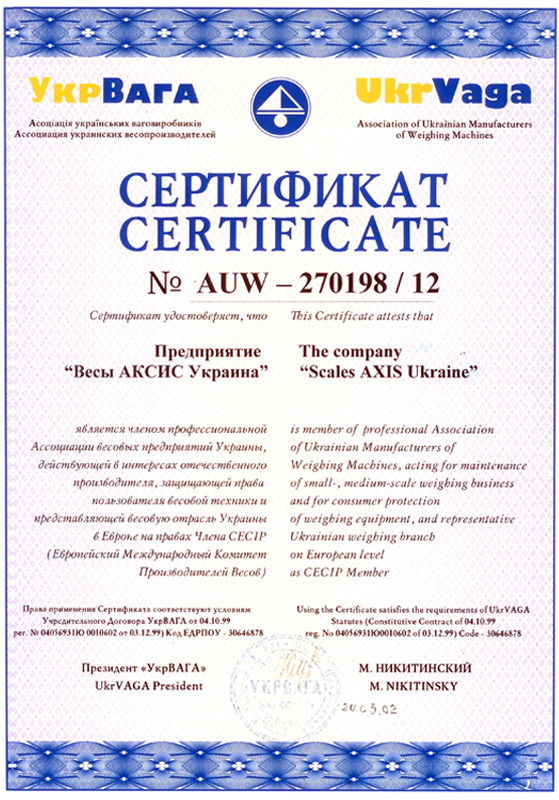 Сертификат "Укр Вага" |